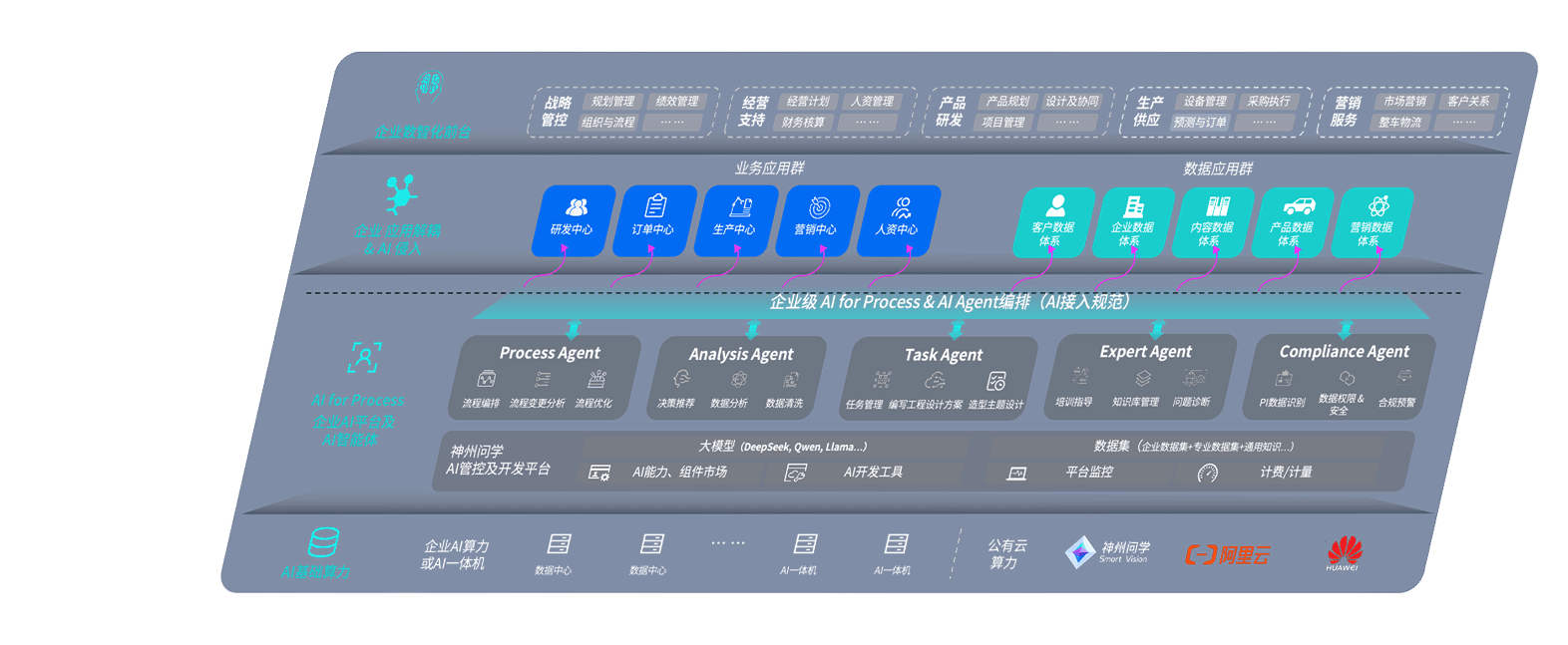 彩神vll问学智车解决方案是一套基于AI技术的汽车行业智能化系统,,,,覆盖从底层算力到顶层AI应用的全栈方案。。方案由算力层、、、模型层和应用层组成:算力层,,,方案支持多种一体机配置,,,,具备云端灵活部署、、多云适配以及动态优化计算资源的能力;模型层,,彩神vll问学平台版提供了企业级AI应用一站式构建与管理平台,,支持基于后训练强化技术的汽车企业专属模型的训练、、评测和运营;应用层,,,,彩神vll问学DeepSeek版提供包括超级员工、、、智能招采、、、智能营销、、、、智能客服、、AI for BI等一系列解决方案,,,可助力汽车行业实现数字化转型,,,,让管理更智能、、、、响应更敏捷。。。。